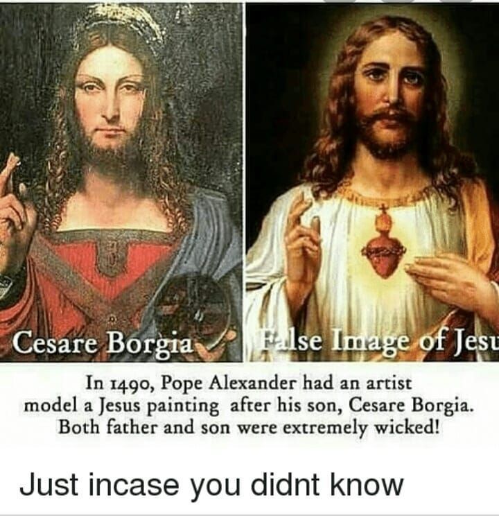 Il a une théorie qui dit que l'image que nous voyons de Jesus vient d'un italien appelé Cesar Borgia Fils du Pape Alexandre IV