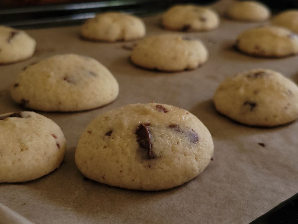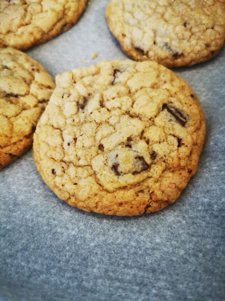 Moi aussi je fais des cookies mais presque pas cuits ! Premièrement 5 min à 180°C, puis 3h au réfrigérateur