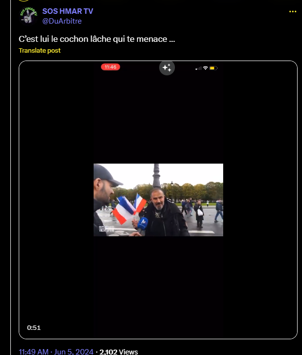 Un juif qui a obtenu des papiers, pseudo patriote, il se sent en confiance avec la Licra, CRIF et lobby juif américain, du coup, ça parle devant l'écran, ça fait style qu'il est pour la France mais il sert surtout Israël, c'est comme Zemmour.