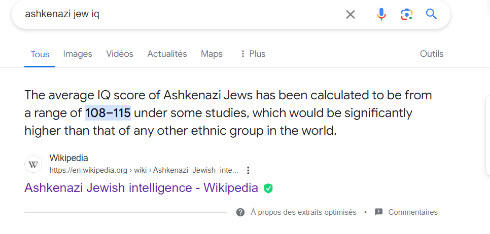 Jtenvoie tout quand t'auras envoyer la source de ton 97 de QI moyen pour les ashkénazes