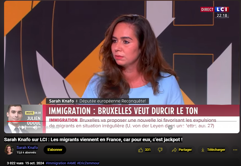Sarah Knafo la juive marocaine touchant un salaire au parlement européen sur LCI : Les migrants viennent en France, car pour eux, c’est jackpot !