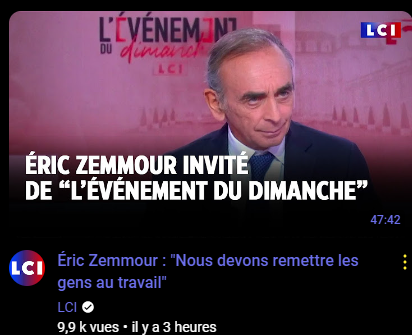 Éric Zemmour : "Nous devons remettre les gens au travail" LCI