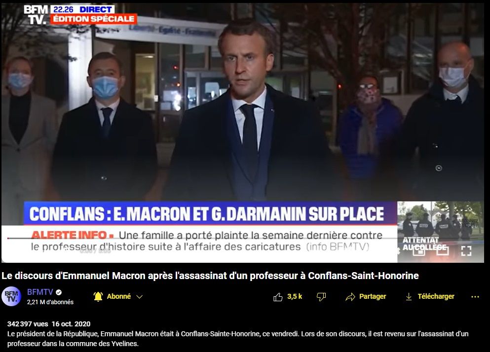 Le discours d'Emmanuel Macron après l'assassinat d'un professeur à Conflans-Saint-Honorine