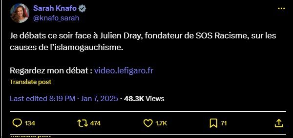 Je débats ce soir face à Julien Dray, fondateur de SOS Racisme, sur les causes de l’islamogauchisme.