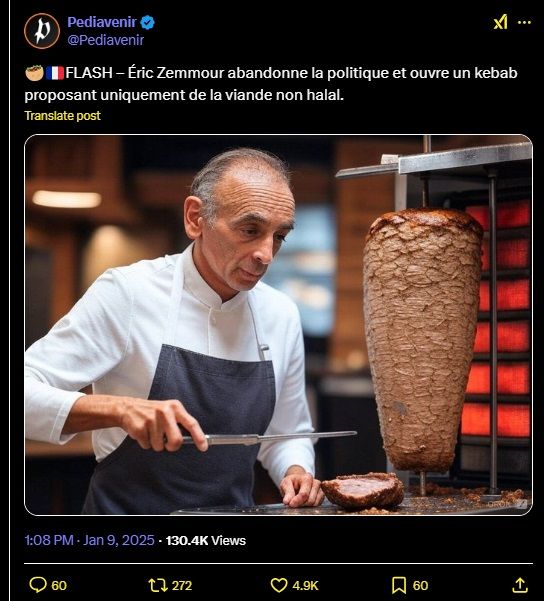 🥙🇫🇷FLASH – Éric Zemmour abandonne la politique et ouvre un kebab proposant uniquement de la viande non halal.
