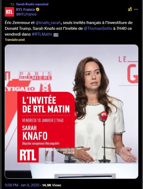 Éric Zemmour et @knafo_sarah, parmi les nombreux invités juifs à l’investiture de Donald Trump. Sarah Knafo est l’invitée de