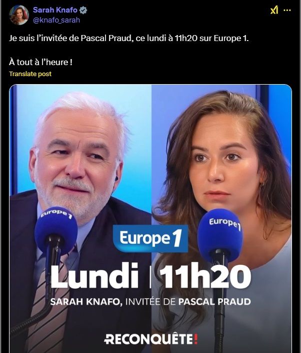 Je suis l’invitée de Pascal Praud, ce lundi à 11h20 sur Europe 1.