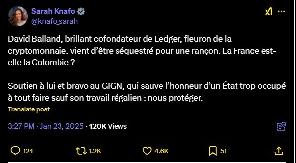 L’entrepreneur, qui a cofondé en 2014 Ledger, start-up valorisée à plus d’un milliard de dollars, a choisi l’humour pour en parler. Sur son profil X, il a écrit une description qui peut prêter à sourire : « Kidnapping Championship 2025. […] Fingers : 9/10 », mentionne-t-il ainsi dans la description de son profil.