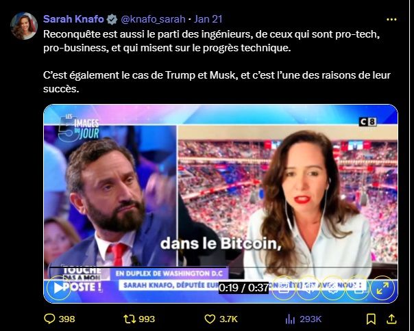 Sarah Knafo à l’investiture de Trump : elle rêve d’une victoire similaire pour la France !