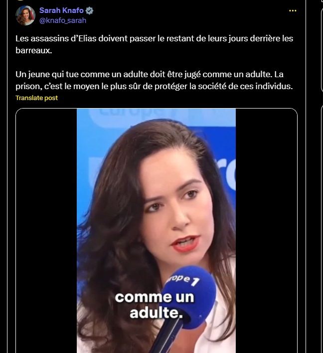 La juive Sarah Knafo chez le sion Pascal Praud : Les assassins d'Elias doivent finir leurs jours en prison.