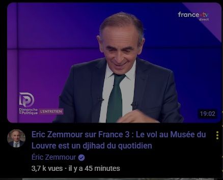 Eric Zemmour sur France 3 : Le vol au Musée du Louvre est un djihad du quotidien