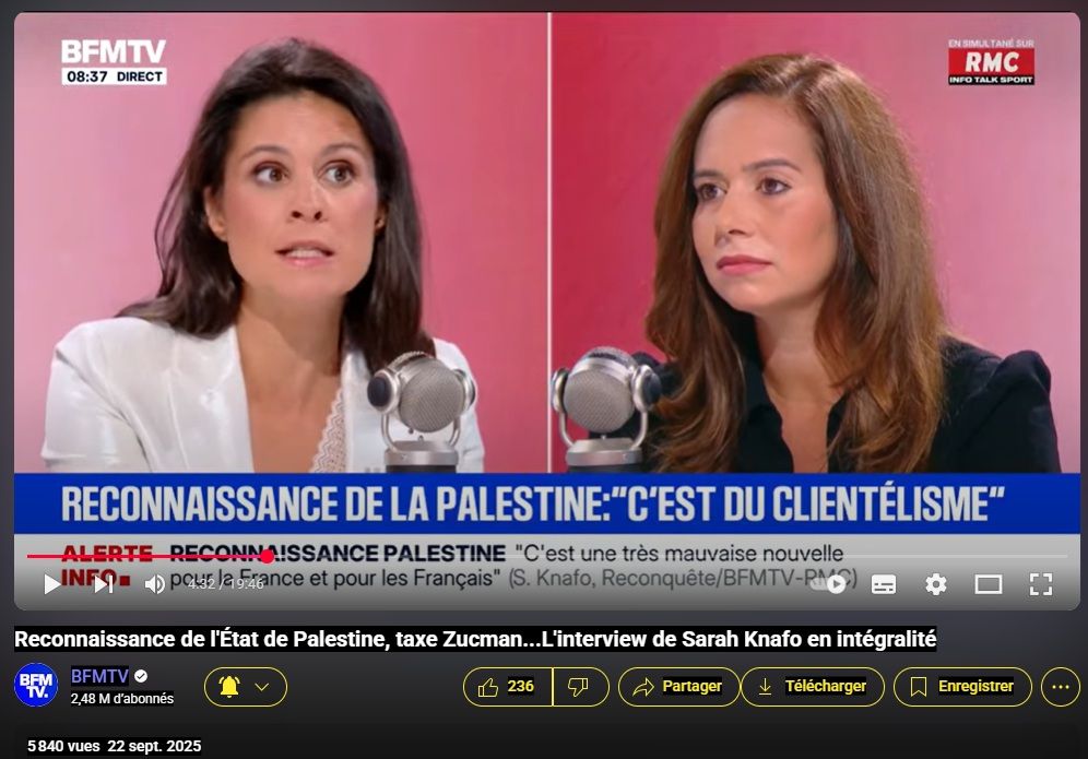 Reconnaissance de l'État de Palestine, taxe Zucman...L'interview de Sarah Knafo en intégralité