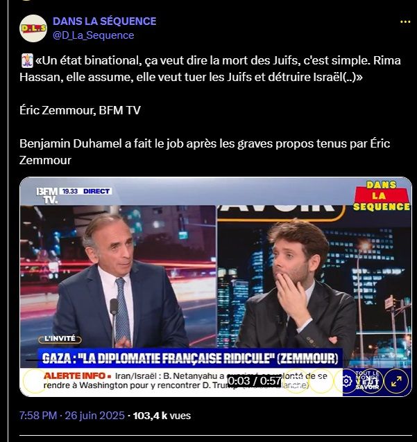 🃏«Un état binational, ça veut dire la mort des Juifs, c'est simple. Rima Hassan, elle assume, elle veut tuer les Juifs et détruire Israël(..)»