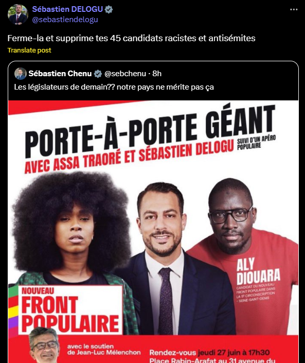 Pas une voix pour le Nouveau Front Populaire, vrai Front antisémite et tous ceux qui s’associeraient avec eux! Pour la gauche l’antisémitisme de LFI est un point de détail.