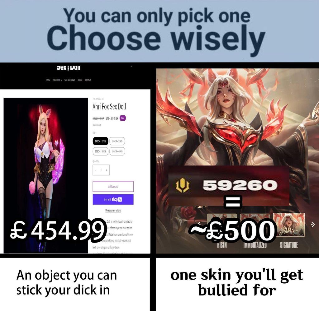 500 balle pour un truc virtuel. Je rappelle que la sexdoll d'Ahri coûte moins cher que ce skin