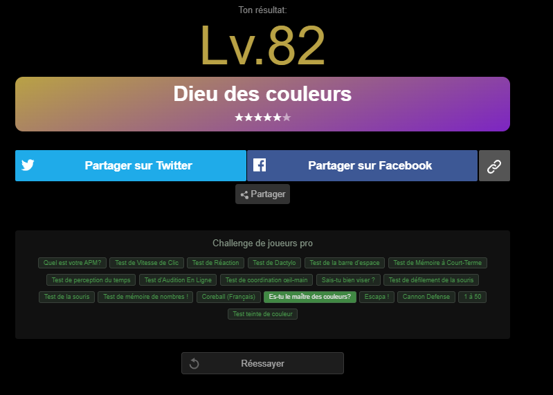 Bah y a quand même des épreuves où il est impossible de tricher comme le jeu des couleurs et aim trainer