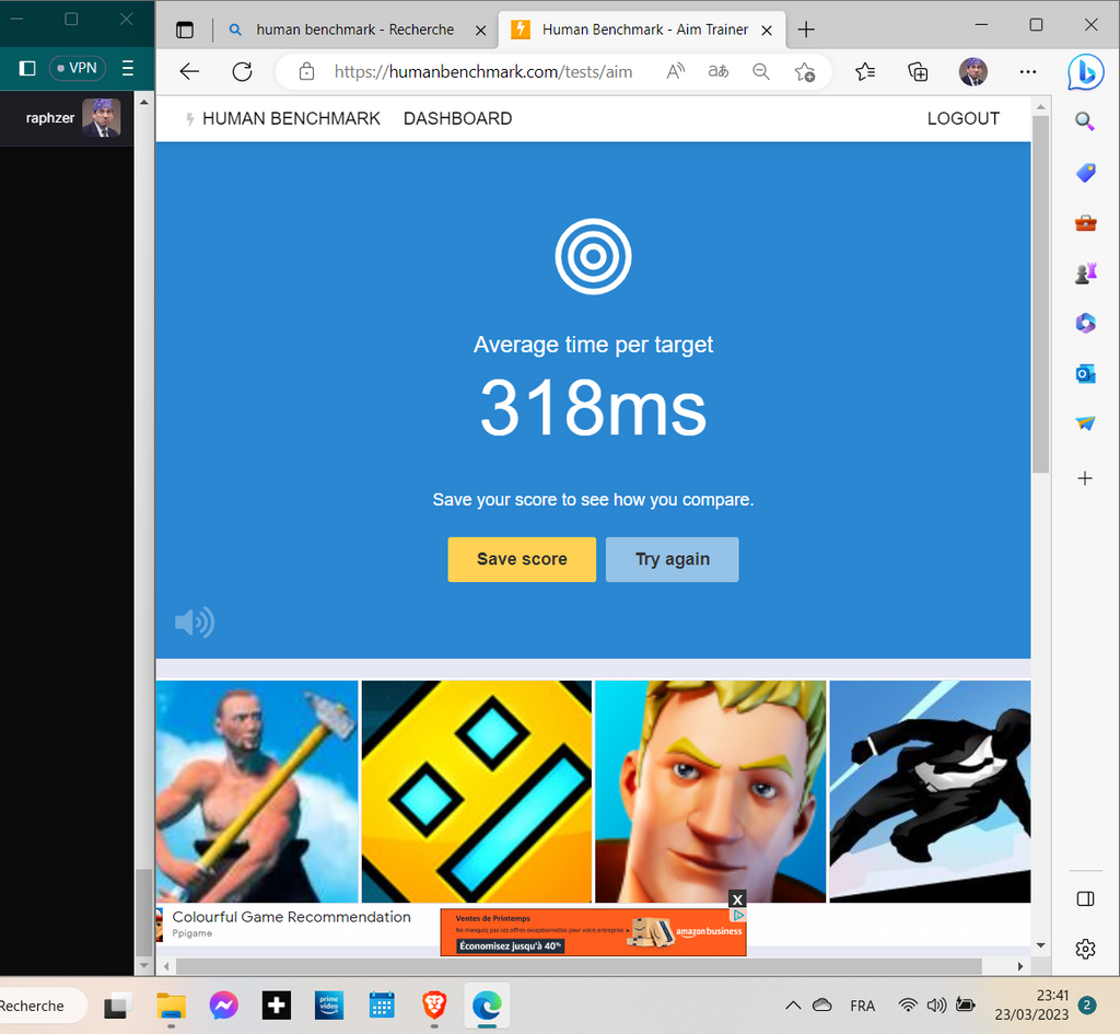 ahi j'ai eu un préshot à 36 ms, ce qui m'a permis de devenir premier