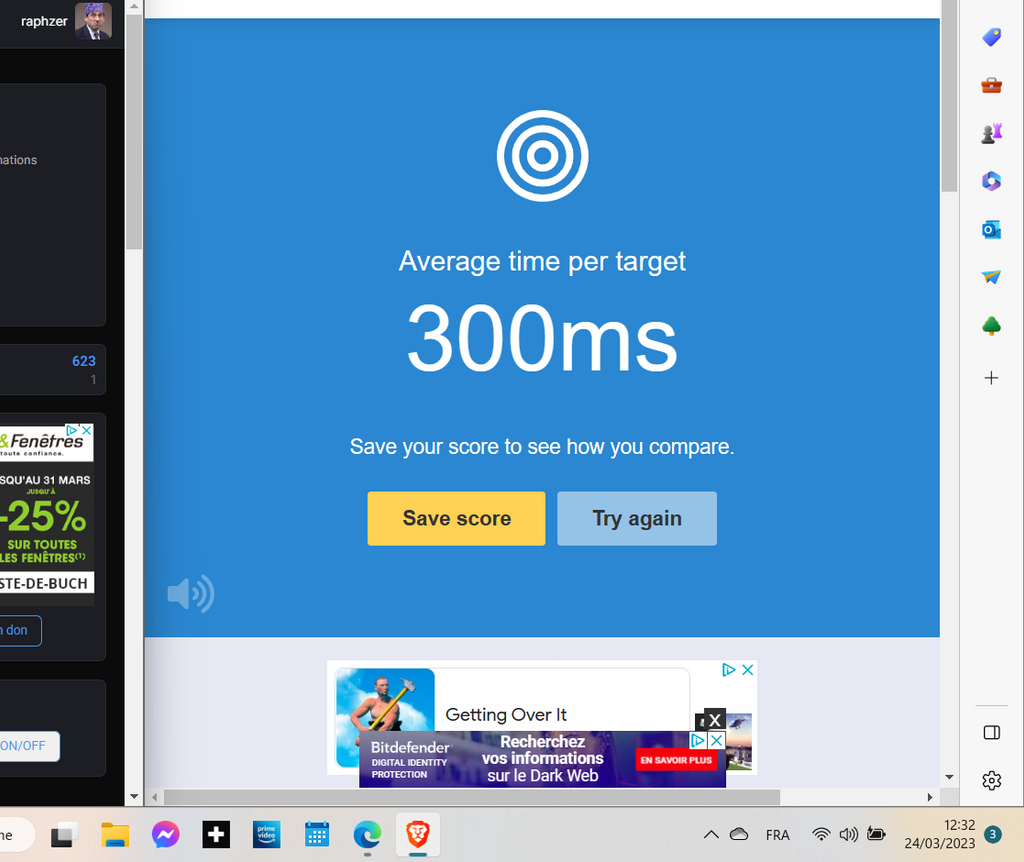 edit: je viens de filmer un 298ms mais j'attends de voir si je vais un meilleur score avant de poster la vidéo pour éviter le spam