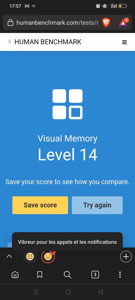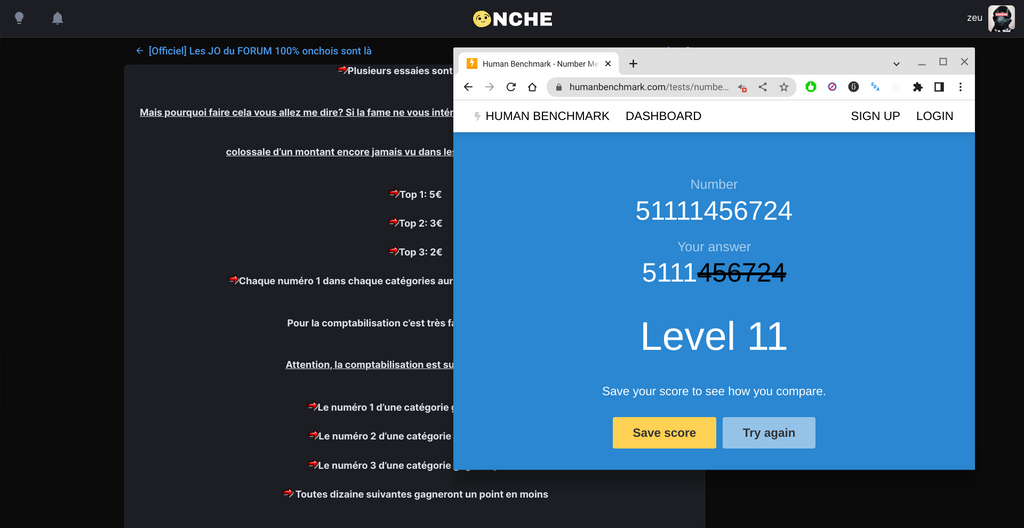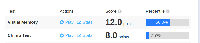 ma performance en visual memory m'a sacrément étonné, je dois avoir surtout du mal a me rappeler de l'ordre