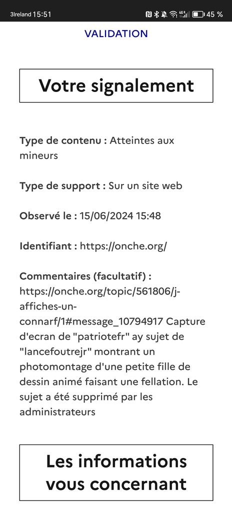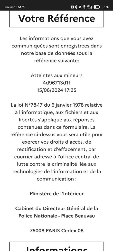 Je suis déçu, il m'a pas signal gouv, j'aimerais vraiment qu'il porte plainte pour avoir accès à son nom et prénom