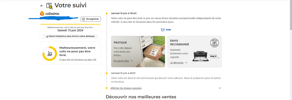 Mais bizarrement alors que mon colis était dans mon secteur de livraison à 8h27