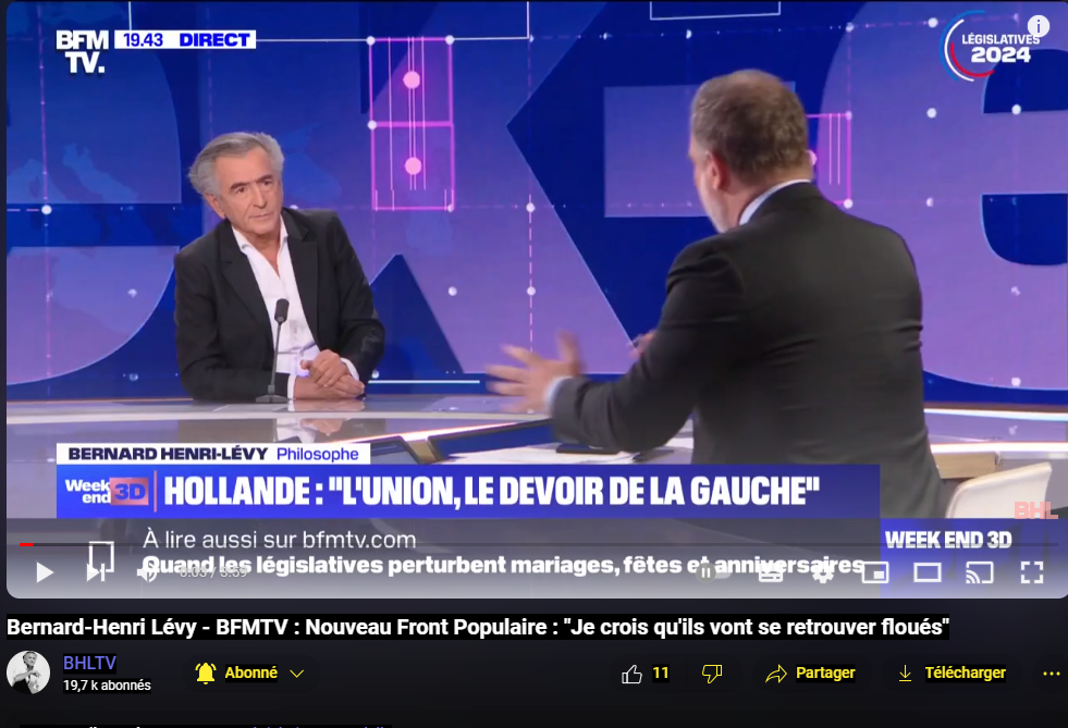 Bernard-Henri Lévy - BFMTV : Nouveau Front Populaire : "Je crois qu'ils vont se retrouver floués"