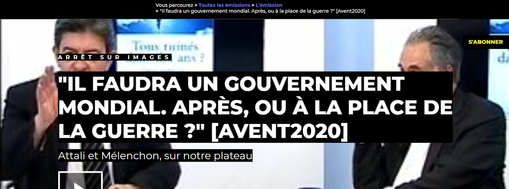 Il faudra un gouvernement mondial. Après, ou à la place de la guerre ?" [Avent2020]