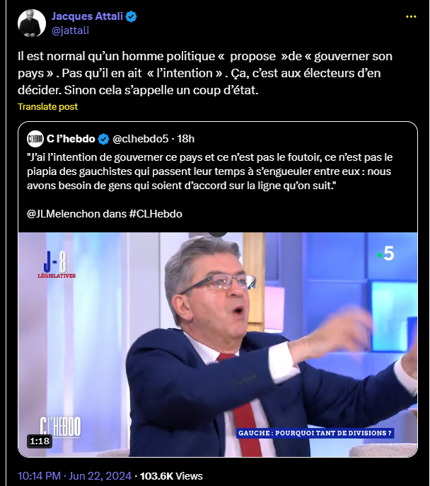 La vidéo de l'échange entre Mélenchon et Attali :