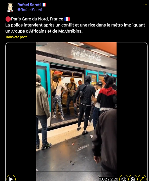 La police intervient après un conflit et une rixe dans le métro impliquant un groupe d'Africains et de Maghrébins.