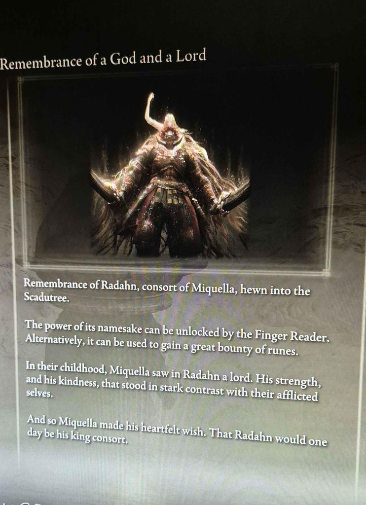 Radhan "consort of miquella". D'abord Mohg et maintenant Radahn. J.R.R Martin ne peut rien écrire sans y inclure de l'inceste