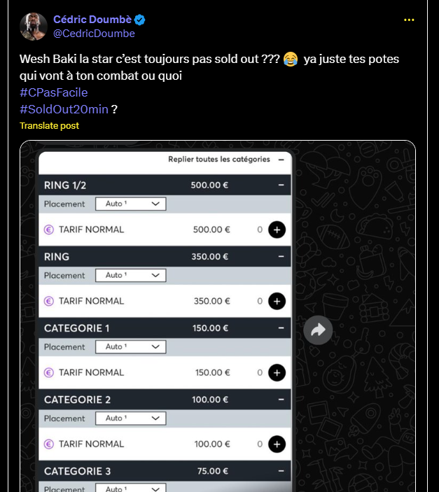 Wesh Baki la star c’est toujours pas sold out ??? 😂 ya juste tes potes qui vont à ton combat ou quoi