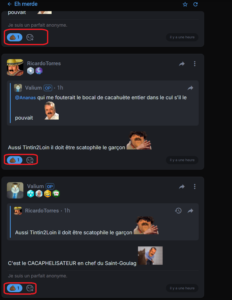 - @Papahet, @Zosterae, vous qui avez OSEZ KAKAPHÉILISER mes POSTS sur mon CALEPIN voyez mon œuvre et la reconnaissance obtenu en ce jour !