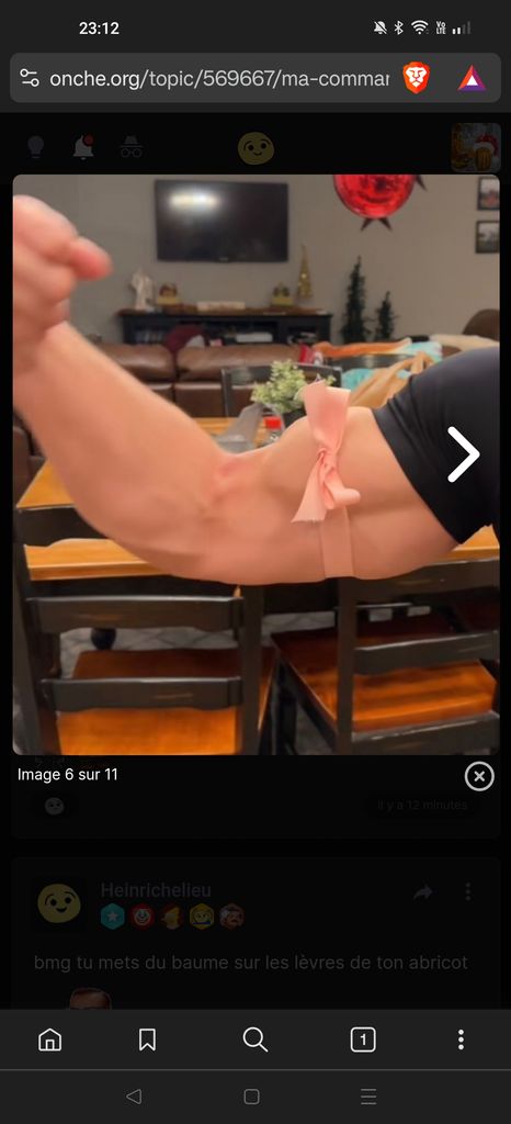 Pourquoi y a un bras musclé avec un noeud rose qui apparaît quand la photo suivante quand on clique sur ta photo ? Sur mobile