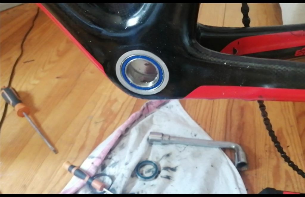 Et taper sur un roulement pour le faire rentrer dans un cadre carbone, c'est une très mauvaise idée. Même si tu frappes pas fort.