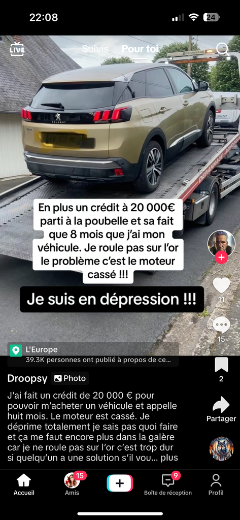 Les bagnolards spé bouchons qui en plus de devoir acheter de l'occaz non par choix mais car le neuf leur est inaccessible, se tapent pleins de vices cachés la semaine après l'achat