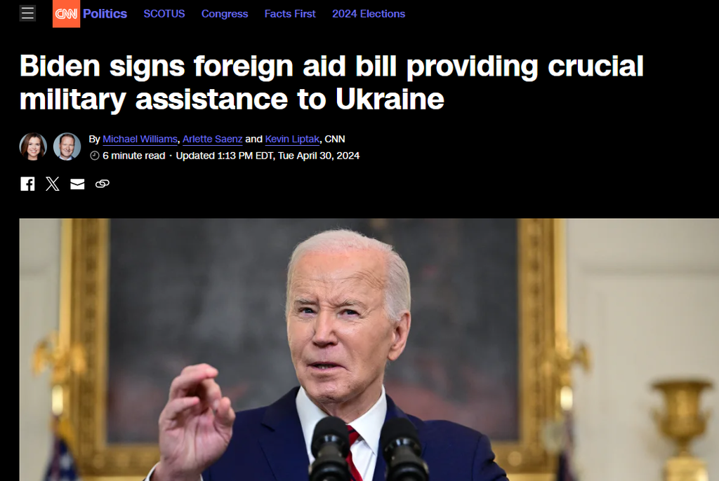 En octobre 2023, l’administration Biden a demandé une aide supplémentaire de 61,4 milliards de dollars pour l’Ukraine pour l’année à venir, mais les retards dans l’adoption d’une aide supplémentaire par la Chambre des représentants ont freiné les progrès, avec les 61 milliards de dollars supplémentaires d’aide. à l'Ukraine ajouté en avril 2024.