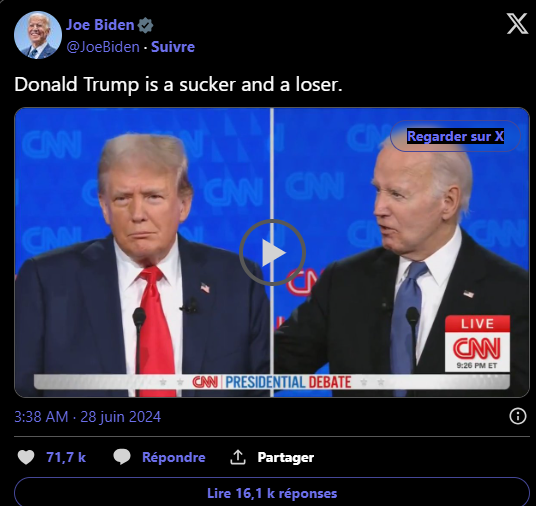 « You're the sucker ! You're the loser! » dit Biden