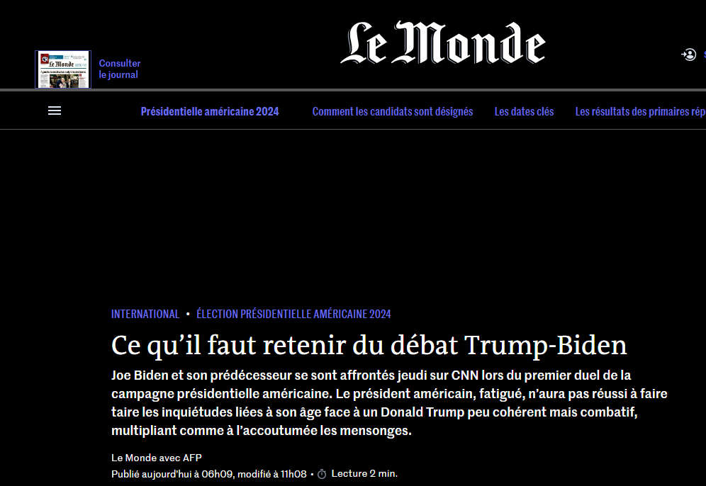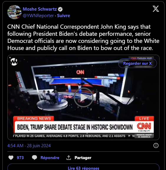 Sur CNN, les commentateurs et analystes politiques sont unanimes : ce débat a été catastrophique pour Joe Biden. Outre le contenu de ses réponses, le président avait souvent le regard perdu et cherchait ses mots.