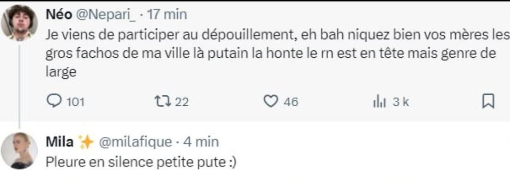 Le camp du bien: « niquez vos meres » « on vous baise » « bande de sales nazis » « gros racistes de merde »