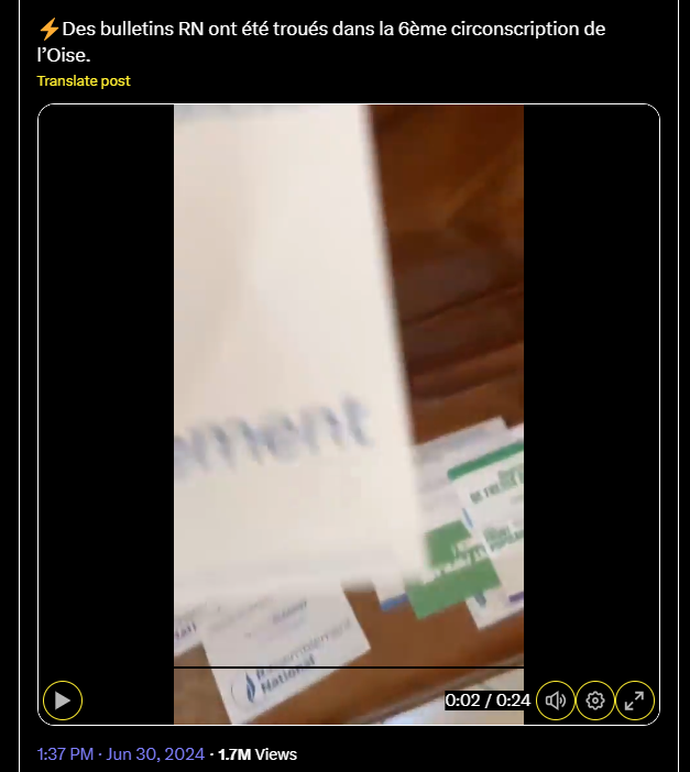 ⚡️Des bulletins RN ont été troués dans la 6ème circonscription de l’Oise.