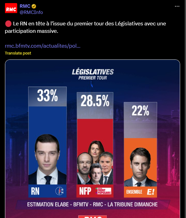 🔴 Le RN en tête à l'issue du premier tour des Législatives avec une participation massive.