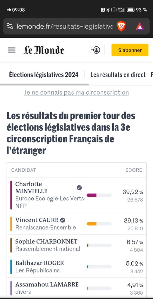 32% pour renaissance et 26% pour le rn
