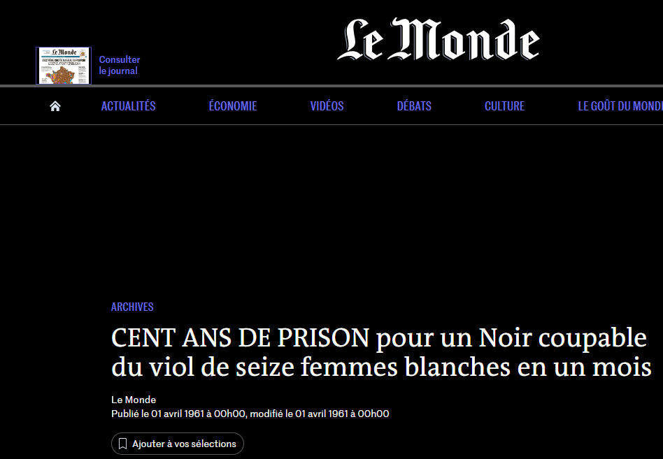 CENT ANS DE PRISON pour un Noir coupable du viol de seize femmes blanches en un mois