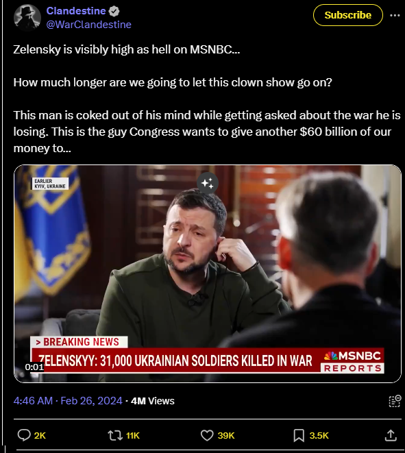 Cet homme est devenu fou alors qu'on lui pose des questions sur la guerre qu'il est en train de perdre. C’est à cette personne que le Congrès veut donner 60 milliards de dollars supplémentaires de notre argent…
