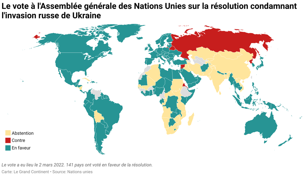 sur le plan diplomatique le monde non occidentale soit en a rien a foutre de la russie et de l'ukraine soit sont alligé par rapport au pays qui les a vassalisé récment (en général le pays pue la merde ca soutoien la russie il pue pas la merde ca soutient l'ukkraine)