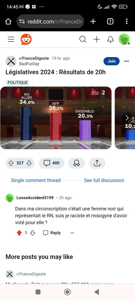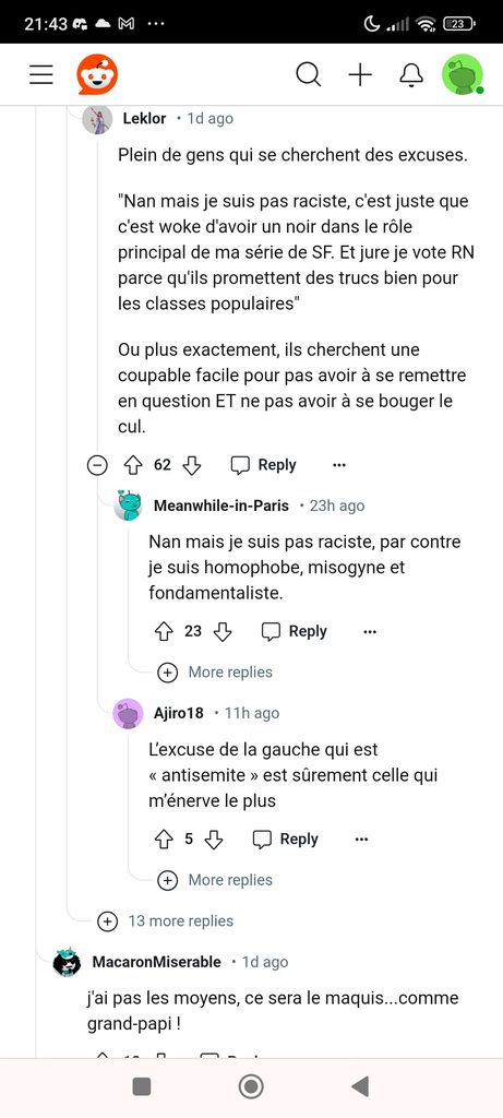 C'est pas un secret qu'il faut pas aller sur Reddit. En tout cas pas sur ce sub la car remplis de cheveux bleus qui rêvent de se faire enculer par l'immigration et qui n'hésiteront pas à te downvote en masse si jamais une phrase dans ton argumentation divergent un poil de leurs opinions