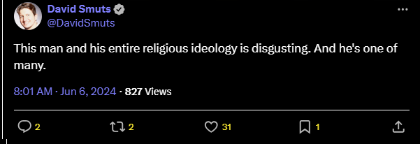 Cet homme et toute son idéologie religieuse sont dégoûtants. Et il en est un parmi tant d’autres.