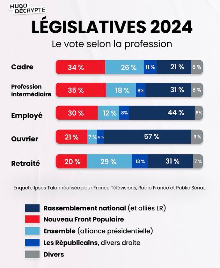 Mépris de classe, parce qu'autant le RN ce sont des escrocs avérés, autant je suis pas sûr qu'on prendra une meilleure direction avec le NFP ou Ensemble