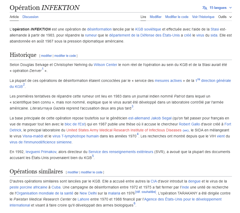 Je rappelle que ce sont les services Russes qui avaient répandu la rumeur avec l'opération infektion que c'était l'occident qui avait créé le SIDA en laboratoire pour tuer les Afrcains et faire que le tiersmonde nous attaque :