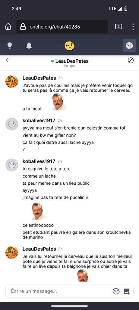 Pour les anciens de JVC, c'est le remake de l'embrouille avortée entre Fiddle et l'autre taré chauve qui se filmait en train de boxer. Évidemment y a rien eu IRL et les deux s'étaient posés dans deux kébabs différents de la même ville pour s'insulter sur le fofo par messages interposés